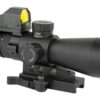 Scope Centerline height raised to AR15 11/2″ scope height and more room for low profile Rear BUIS. Blue and Green Color Illuminated reticle, with multiple brightness settings for each color. Lowered BDC Turret height, for lower mounting height for the Micro Dot Reflex Optic. Auto Locking Quick Release mount and a more compact QR Lever. The Ultimate Sighting System (USS) Gen II gives you all the Benefits of a Mark III Tactical 3-9X magnified Scope with the Advantage of a Micro Red Dot Reflex Optic for close range targets. This Combo is comprised of a Mark III GEN II Tactical Scope with a Micro Dot Mount that mounts directly to the Ocular Lens Housing and a Red Micro Dot optic on top. This is the perfect platform for the New DDAB Micro Red Dot Reflex Sight (also included in the USS). 100-500 yard Bullet Drop Compensator (BDC) calibrated for M193 55gr. FMJ Mil-Spec ammo. Quick Focus Eyepiece. Fully Multi Coated Lenses. Integrated Slant Cut Sun Shade. Black Anodized exterior finish. Includes lens covers and batteries, DDAB is a Red Micro Dot optic with on/off switch. Includes Micro Dot dust cover and batteries.