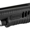 The SFL-11WL shotgun forend weapon light is a complete forend replacement for your 12 gauge Mossberg 500/590/590A1 or Shockwave pump-action shotgun. Built from a one-piece body of heavy-duty glass-filled nylon with an over-molded rubber grip area, it features a super-bright LED rated at 1200 lumens with an hour and a half runtime. Designed around a high-efficiency deep parabolic reflector, the tightly focused beam has a 203-meter beam distance
