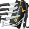 -This set includes a caping knife, gut-hook skinner, boning/fillet knife, wood/bone saw, ribcage spreader,