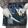 -Complete 8-piece field-to-freezer game processing set w/ a nylon roll-pack that converts to a belt scabbard