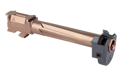 The Radian AFTERBURNER + RAMJET combo offers exceptional recoil reduction and match-grade accuracy in a concealed carry package. The threadless barrel design allows for easy installation and removal for cleaning. The AFTERBURNER compensator is machined from stainless steel, and the RAMJET barrel is made from hardened 416R SS; both feature a Radianite coating. This combination ensures low friction, high hardness, and excellent corrosion resistance, enhancing durability and preventing erosion from muzzle blast. Angled front faces on the AFTERBURNER help with holstering.