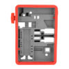 The most comprehensive AR15 bench block ever allows you to tap 13 critical pins from 5 different components. The block is wrapped in an over-molding that grips to your bench to prevent slippage. Plus, engraved on the ultra-tough engineering grade surface are clear component labels marked with pin punch sizes to make determining what component to place where and what pins to use, simple. On the backside of the block, to capture pins and keep them from rolling away, are embedded magnets and, to keep your pins from getting lost, a pin storage section is included.