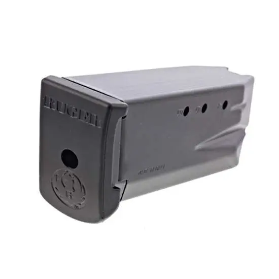 This blued steel magazine is for the Ruger SR40c and features an extended floor plate.