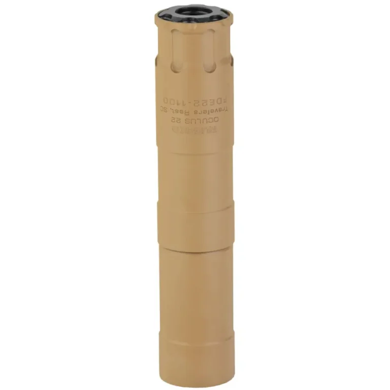Rugged Suppressors Oculus 22 with ADAPT Modular Technology, Rimfire Suppressor, 22 LR to 5.7X28mm, Lenght: Standard Configuration: 5.25, Short Configuration: 3.25, Weight: Standard Configuration: 6.9oz, Short Configuration: 4.3oz, Entirely 17-4PH Stainless Steel, 1/2X28 Direct Thread Mount, Flat Dark Earth OCUFDE22