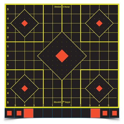Five targets on each sheet – use center target for sighting-in and four smaller targets for testing results of various ballistic loads or for confirmation of sight-in groups. Convenient 1 inch numbered grid lines simplify scope adjustments.