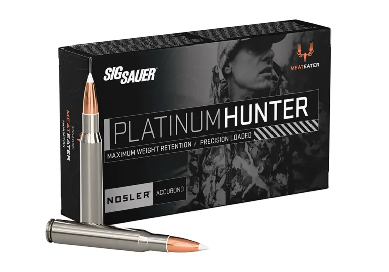The new Platinum Hunter line of ammunition was created in partnership with the hunting experts at Meateater. This premium offering is precision-loaded with a Nosler Accubond projectile delivering unmatched weight retention and deep penetration on big game. Each round is enclosed in a corrosion-resistant nickel case for smooth cycling ensuring reliability in all conditions. And with waterproofing for extreme weather resistance nothing will stop you from making the perfect shot. – Experience the Platinum Hunter – the apex of our hunting ammunition line and a testament to our commitment to quality performance and reliability. Because in hunting only the best will do. – FEATURES: – Featuring NOSLER Accubond bonded core bullets for maximum weight retention – Uniform Expansion With Deep Penetration On Tough Game – Nickel Cases For Corrosion Resistance And Smooth Cycling – Waterproofed For Reliability In Extreme Conditions – Precision Loaded With Polymer Tip For Consistent Accuracy – Caliber 30-06 SPRG – Grain Weight 180 Grain – Qty Per Package 20 – Test Barrel Length (in) 24.0