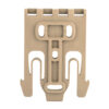 The QLS 19 Locking Fork mounts directly to the back of any Safariland(R) 2-hole pattern pouch or 3-hole pattern holster. The combination can then be connected to either the QLS 22 or QLS 22L Receiver Plate. Use with either of these receiver plates allows for quick transfer of holster between attachment points such as a belt loop, tactical leg shroud or other stable mounting platform. The QLS fork and plate combination passes the Level I Retention(TM) pull test.
