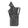 The Safariland 7360RDS 7TS Mid-ride holster is specifically designed to fit and protect weapons with red dot optics. The 7360RDS 7TS Mid-ride holster features ALS (Automatic Locking System) retention, which is completely operable with the thumb, making training easy, and the straight-up draw makes them very instinctive to use, yet difficult for an assailant’s attempted takeaway. Incredibly durable, yet remarkably lightweight, the 7360RDS holster is constructed from SafariSeven material and built to withstand the elements, including extremes of heat and cold. In addition, the holster retains its structural integrity even when submerged in water indefinitely. On the inside of the holster, the SafariSeven material is non-abrasive to protect your firearm’s finish. Additional protection is provided by raised surfaces which create airspace around the firearm, allowing dirt and moisture to quickly clear contact. To ensure a perfect fit, the 7360RDS holster is compatible with all Safariland holster mounting options, and the mid-ride belt loop allows the holster to ride close to the body.