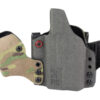 An ergonomic, mission-adjustable, RDS-compatible, multi-positional, deep concealment IWB hybrid thermoplastic holster. Its distinctive features enable concealed carry for a wide range of handgun fits from various carry positions while allowing a full firing grip prior to drawing. The design includes passive retention and adjustable tension, enabling a finely tuned fit and smooth draw. This evolution of the IncogX features a series of clips that provide more adaptability to the user while maintaining the original goals of improved grip, concealment, and function. The clips open outward and slide down with the holster, naturally locking over the belt. An actuated finger tab flexes to open, allowing quick installation or removal from the belt. An improved clip strut design combines functionality with customized concealment shims that can be easily installed or removed without tools. All IncogX models come with clip strut shims in three different concealment sizes: 1/8″, 1/4″, and 3/8″.
