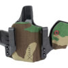 An ergonomic, mission-adjustable, RDS-compatible, multi-positional, deep concealment IWB hybrid thermoplastic holster. Its distinctive features enable concealed carry for a wide range of handgun fits from various carry positions while allowing a full firing grip prior to drawing. The design includes passive retention and adjustable tension, enabling a finely tuned fit and smooth draw. This evolution of the IncogX features a series of clips that provide more adaptability to the user while maintaining the original goals of improved grip, concealment, and function. The clips open outward and slide down with the holster, naturally locking over the belt. An actuated finger tab flexes to open, allowing quick installation or removal from the belt. An improved clip strut design combines functionality with customized concealment shims that can be easily installed or removed without tools. All IncogX models come with clip strut shims in three different concealment sizes: 1/8″, 1/4″, and 3/8″.