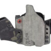 An ergonomic, mission-adjustable, RDS-compatible, multi-positional, deep concealment IWB hybrid thermoplastic holster. Its distinctive features enable concealed carry for a wide range of handgun fits from various carry positions while allowing a full firing grip prior to drawing. The design includes passive retention and adjustable tension, enabling a finely tuned fit and smooth draw. This evolution of the IncogX features a series of clips that provide more adaptability to the user while maintaining the original goals of improved grip, concealment, and function. The clips open outward and slide down with the holster, naturally locking over the belt. An actuated finger tab flexes to open, allowing quick installation or removal from the belt. An improved clip strut design combines functionality with customized concealment shims that can be easily installed or removed without tools. All IncogX models come with clip strut shims in three different concealment sizes: 1/8″, 1/4″, and 3/8″.