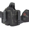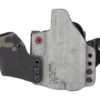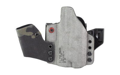 An ergonomic, mission-adjustable, RDS-compatible, multi-positional, deep concealment IWB hybrid thermoplastic holster. Its distinctive features enable concealed carry for a wide range of handgun fits from various carry positions while allowing a full firing grip prior to drawing. The design includes passive retention and adjustable tension, enabling a finely tuned fit and smooth draw. This evolution of the IncogX features a series of clips that provide more adaptability to the user while maintaining the original goals of improved grip, concealment, and function. The clips open outward and slide down with the holster, naturally locking over the belt. An actuated finger tab flexes to open, allowing quick installation or removal from the belt. An improved clip strut design combines functionality with customized concealment shims that can be easily installed or removed without tools. All IncogX models come with clip strut shims in three different concealment sizes: 1/8″, 1/4″, and 3/8″.