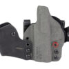 An ergonomic, mission-adjustable, RDS-compatible, multi-positional, deep concealment IWB hybrid thermoplastic holster. Its distinctive features enable concealed carry for a wide range of handgun fits from various carry positions while allowing a full firing grip prior to drawing. The design includes passive retention and adjustable tension, enabling a finely tuned fit and smooth draw. This evolution of the IncogX features a series of clips that provide more adaptability to the user while maintaining the original goals of improved grip, concealment, and function. The clips open outward and slide down with the holster, naturally locking over the belt. An actuated finger tab flexes to open, allowing quick installation or removal from the belt. An improved clip strut design combines functionality with customized concealment shims that can be easily installed or removed without tools. All IncogX models come with clip strut shims in three different concealment sizes: 1/8″, 1/4″, and 3/8″.