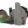 An ergonomic, mission-adjustable, RDS-compatible, multi-positional, deep concealment IWB hybrid thermoplastic holster. Its distinctive features enable concealed carry for a wide range of handgun fits from various carry positions while allowing a full firing grip prior to drawing. The design includes passive retention and adjustable tension, enabling a finely tuned fit and smooth draw. This evolution of the IncogX features a series of clips that provide more adaptability to the user while maintaining the original goals of improved grip, concealment, and function. The clips open outward and slide down with the holster, naturally locking over the belt. An actuated finger tab flexes to open, allowing quick installation or removal from the belt. An improved clip strut design combines functionality with customized concealment shims that can be easily installed or removed without tools. All IncogX models come with clip strut shims in three different concealment sizes: 1/8″, 1/4″, and 3/8″.