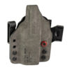 The Incog X is compatible with any Red Dot Sight (RDS) capable of being installed on the firearm manufacturer’s slide behind the ejection port (including mounting options using the firearm manufacturer’s adapter plates). They tested dozens of popular RDS models including larger optics like the Trijicon SRO. The Trijicon SRO requires a slight repositioning of the upper flat clip to eliminate minor interference, but works flawlessly after adjustment. Boltaron construction provides form fitting passive retention. Suede exterior adds extra friction for secure IWB wear. Adjustable clip positioning allows for ride-height adjustment.