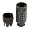 The Barking Spider is designed to redirect noise, blast, and concussion forward and away from the shooter (down range). It also increases the back pressure which in turn can increase the reliability in a short barrel application where dwell time has been sacrificed for barrel length or the increased pressure is needed for sub sonic or weak ammo. The Barking Spider can be used on any barrel length but it really shines in short barrel applications. The Barking Spider is Modular in that it can accept multiple different end caps, attachments, and thread protectors. The Modularity allows the operator to tailor the weapon system for a specific application. The front end of the Barking Spider has an integrated striking device or glass breaker with 1 1/8″ wrench slots for easy disassembly making cleaning and maintenance a breeze. The internals come out the front leaving the body attached to the barrel. This allows you to pin (perm attach) the body to the barrel to meet 16″ OAL requirements yet still be able to disassemble the muzzle device from the front. The Barking Spider was specifically designed to handle full auto and high volume fire. The Barking Spider features a cutting edge blast cone design which is supported in both the front AND the rear. This feature not found on any other Krinkov muzzle brake eliminates the cone from sagging in extremely high temperatures. The Barking Spider, patent pending, is 100% Made in the USA and features a Lifetime Warranty!