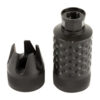 The Barking Spider is designed to redirect noise, blast, and concussion forward and away from the shooter (down range). It also increases the back pressure which in turn can increase the reliability in a short barrel application where dwell time has been sacrificed for barrel length or the increased pressure is needed for sub sonic or weak ammo. The Barking Spider can be used on any barrel length but it really shines in short barrel applications. The Barking Spider is Modular in that it can accept multiple different end caps, attachments, and thread protectors. The Modularity allows the operator to tailor the weapon system for a specific application. The front end of the Barking Spider has an integrated striking device or glass breaker with 1 1/8″ wrench slots for easy disassembly making cleaning and maintenance a breeze. The internals come out the front leaving the body attached to the barrel. This allows you to pin (perm attach) the body to the barrel to meet 16″ OAL requirements yet still be able to disassemble the muzzle device from the front. The Barking Spider was specifically designed to handle full auto and high volume fire. The Barking Spider features a cutting edge blast cone design which is supported in both the front AND the rear. This feature not found on any other Krinkov muzzle brake eliminates the cone from sagging in extremely high temperatures. The Barking Spider, patent pending, is 100% Made in the USA and features a Lifetime Warranty!