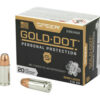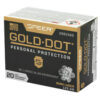 Gold Dot was the first handgun ammunition loaded with true, bonded-core bullets. Using an exclusive Uni-Cor(R) method, Speer bonds the jacket to the core one molecule at a time at the very beginning of the bullet construction process. This virtually eliminates core-jacket separation. With options for both standard handguns and short barrels, there’s a Gold Dot load to fit any shooter. Each Gold Dot hollow point cavity is tuned by specific caliber and bullet weight to ensure optimum performance. Speer forms the hollow point cavity in two stages. The first establishes how far the bullet can expand; the second controls the rate of expansion. This patented two-step cavity formation gives Speer engineers incredible control in the design process. Each bullet caliber and weight is tuned for optimum expansion and penetration. The bullet is then finished to provide a smooth profile for reliable feeding in semi-automatic handguns. To ensure Gold Dot performs when you need it most, they first make sure it excels in the stringent tests developed by the Federal Bureau of Investigation for service-class handgun cartridges. These protocol tests evaluate penetration, expansion and retained weight in bare gelatin and gelatin shielded by common barriers.