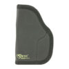 Their holsters are the most versatile, comfortable and convenient on the market. The holster uses a high friction synthetic rubber to stay in place. These can be worn in the waistband or in a pocket or on the ankle. Also available in modified versions that fit most lights and lasers.