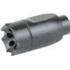 ATHENA allows a shooter to inexpensively upgrade their rifle to the Dynamount Sighting System. Muzzle rise has been optimized as well, with gas vented at an angle then forward. This sends a lower percent of sound back towards the shooter, optimizing sonic performance over recoil. Like all Ultradyne muzzle devices, a timing nut is included for easy installation.