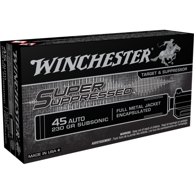 Be the first to review “Winchester Super Suppressed Handgun Ammunition .45 ACP 230 gr. FMJE 850 fps 50/ct”