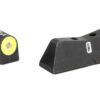 XS DXT2 Big Dot Night Sights provide the best front sight visibility in all lighting conditions. DXT2 Big Dot sights focus attention on the front sight using a high-contrast front and a V-notch rear for an unobstructed view of the front sight. The DXT2 Big Dot front sights feature a patent-pending glow dot that absorbs light and emits a glow in low light levels before the tritium becomes visible. Optic Orange is designed to deliver a high-contrast sight picture in bright light and remain visible as lighting decreases. To ensure visibility in uncharged low light, optic orange relies primarily on yellow with a touch of red. The larger surface area of the convex dot enhances light absorption, increasing the charge of the glow properties. The ,dot-the-i, sight picture, with a tritium dot in the front sight and a tritium bar in the rear, prevents confusion between front and rear sights in stressful situations. The wide field of view improves visibility of both the front sight and the target downrange.