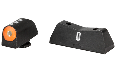 XS DXT2 Big Dot Night Sights provide the best front sight visibility in all lighting conditions. DXT2 Big Dot sights focus attention on the front sight by using a high-contrast front and a V-notch rear for an unobstructed view. The front sights feature a patent-pending glow dot that absorbs light and glows in low light before it becomes dark enough to see the tritium. Optic Orange is designed to deliver a high-contrast sight picture in bright conditions and maintain visibility as light diminishes. To ensure visibility in low light when uncharged, optic orange mainly relies on yellow with a touch of red. The larger surface area of the convex dot enhances light absorption, boosting the glow’s brightness. The ,dot-the-i, sight picture, with a tritium dot on the front sight and a tritium bar on the rear, helps prevent confusion of the sights during high-stress situations. The wide field of view improves visibility of both the front sight and the threat downrange.