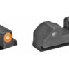 XS R3D Night Sights feature a traditional 3-dot tritium, notch and post sight picture. The blacked-out rear increases contrast against the front sight. The front sight is available in orange or green and is equipped with Ember(R) Glow Dot Technology. Ember absorbs ambient light and glows in low light. The front tritium lamp charges the Ember dot making the front sight glow brighter than the rear at all times, keeping focus downrange. R3D sights are the brightest notch and post option for fast and accurate shooting in bright and low light.