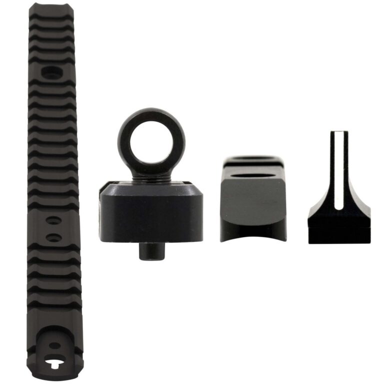 Lightweight anodized aluminum rail is machined to Picatinny specs and allows scope mounting directly over the receiver or forward for scout scopes or red dot sights. XS Ghost Ring WS is fully adjustable for windage and elevation and comes with two apertures .230" and .191" inside diameter for different lighting conditions. The large Ghost Ring affords a great field of view for fast target acquisition.