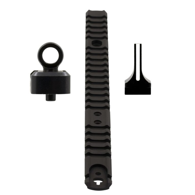 Lightweight anodized aluminum rail is machined to Picatinny specs and allows scope mounting directly over the receiver or forward for scout scopes or red dot sights. XS Ghost Ring WS is fully adjustable for windage and elevation and comes with two apertures .230" and .191" inside diameter for different lighting conditions. The large Ghost Ring affords a great field of view for fast target acquisition. The XS White Stripe (WS) front sight replaces the existing blade and ramp and features a blued steel body with a painted white stripe face. The white on black front post is highly visible in all lighting conditions and provides contrast against any color background. Due to moving the rear sight from the barrel to the receiver some zeroing issues might arise. Alternate front sight heights are available. Installation requires the removal of factory rear sight. All screws torque to 20 INCH-pounds; over-torquing can fracture or break screws.